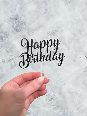 Add a touch of elegance to your cake with this black glitter "Happy Birthday" cake topper! Featuring a sleek calligraphy-style font with shimmering glitter details, this topper is both modern and sophisticated. Comes attached to a sturdy white stick that makes it easy to insert into cakes, making it a great addition to any birthday theme, from minimalist to glam. Whether you're celebrating a sweet 16, 30th birthday, or an elegant soirée, this topper enhances your cake with a chic and stylish look.
